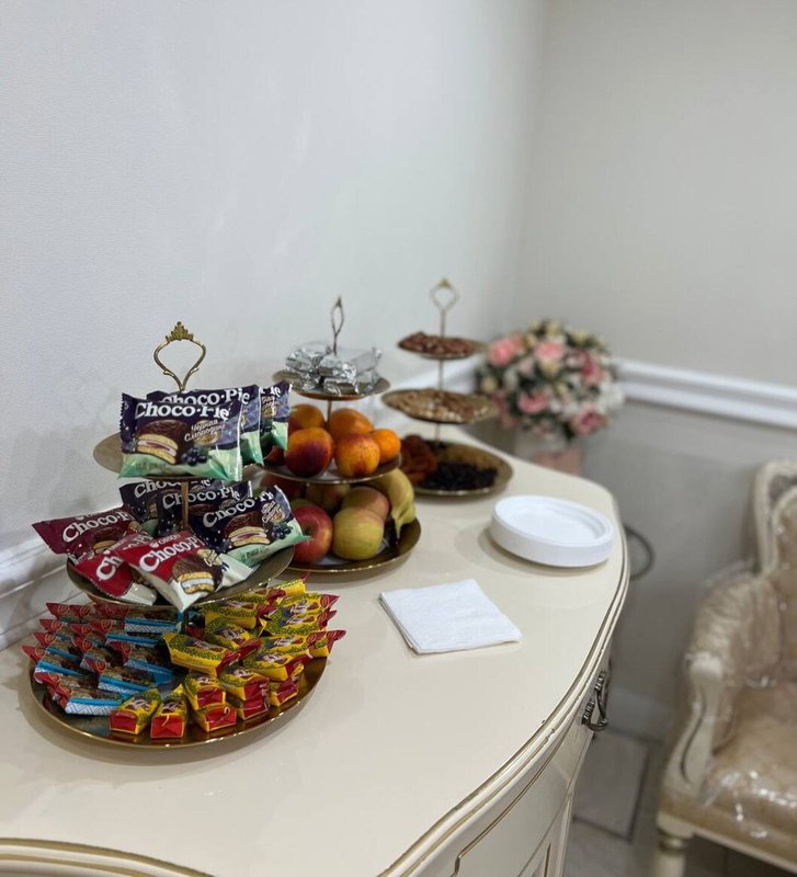 Красота, шик, ароматный кофе и к нашему удивлению-щедрый сладкий стол и фрукты!