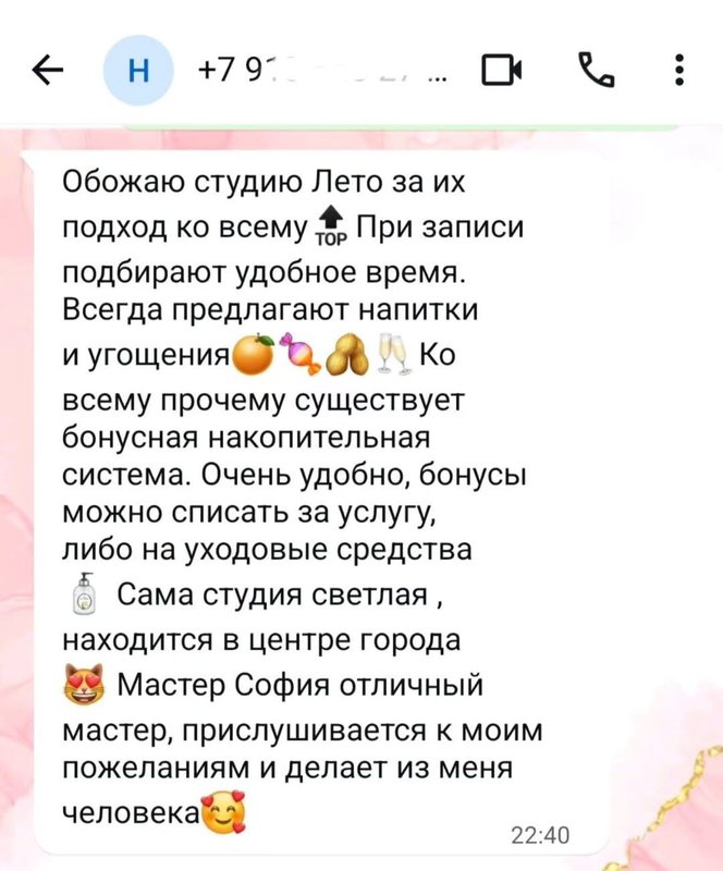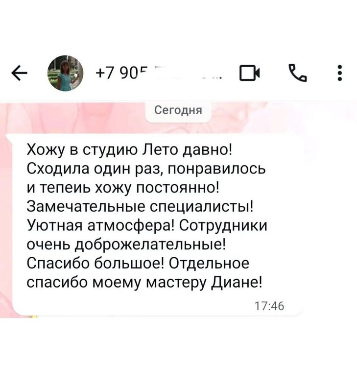 Два года посещаю студию красоты «Лето», всегда очень приятная атмосфера, гостеприимные администраторы